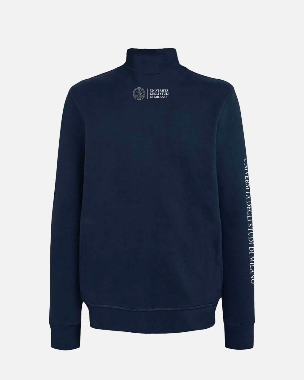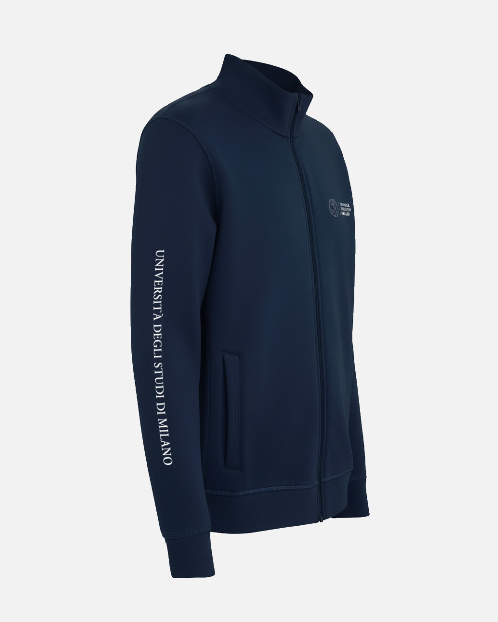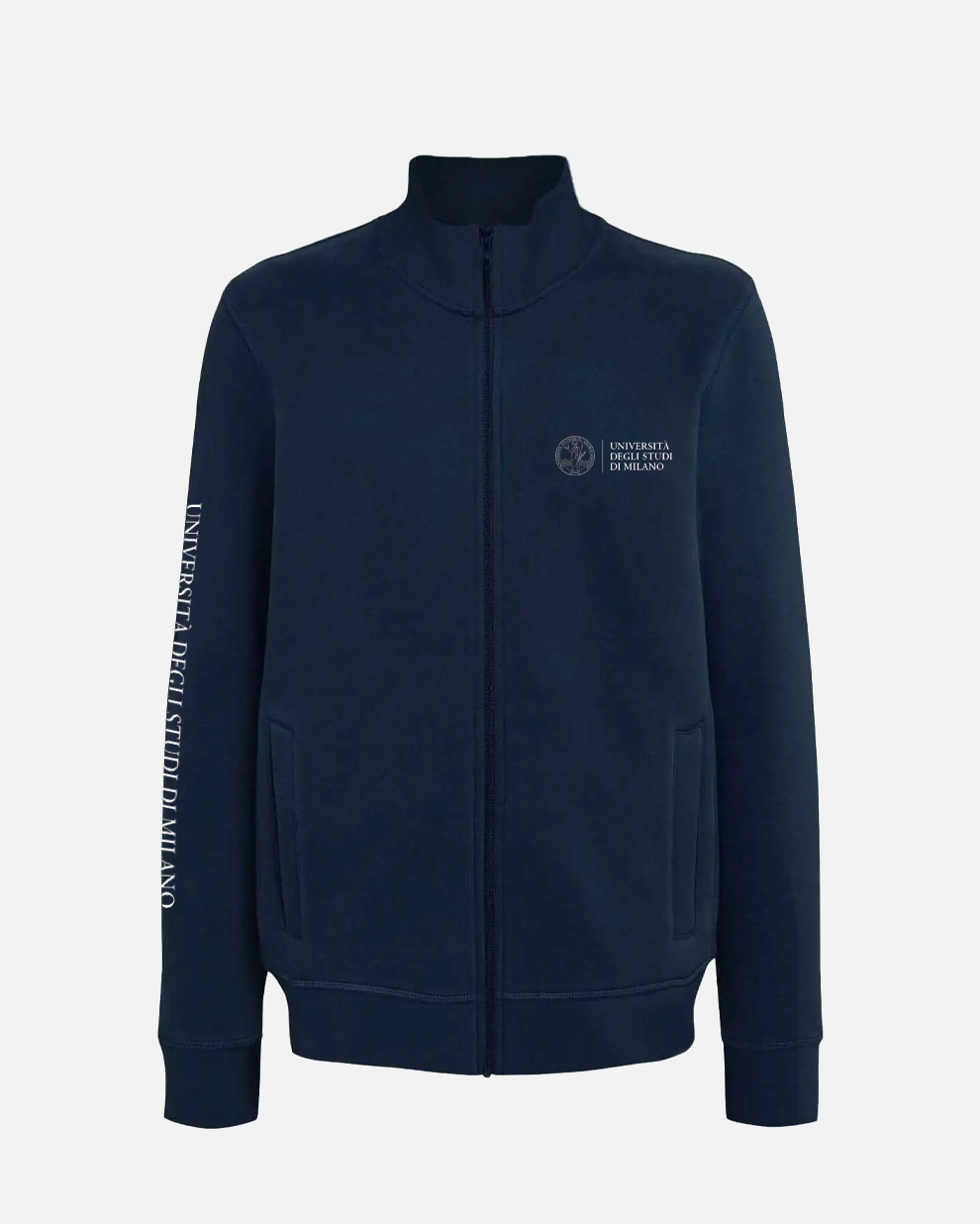 Sweatshirt made of 70% cotton, 30% polyester with set-in sleeves, brushed fleece interior, full zip closure, welt pockets, ribbed hem and cuffs, and a side-seam construction. Features a tear-away label. The interior is polyester and the exterior is 100% cotton.