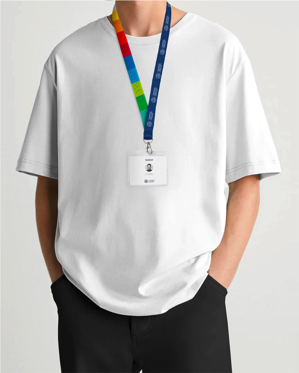 Lanyard with safety hook and carabiner to attach a transparent badge holder (10x8 cm).