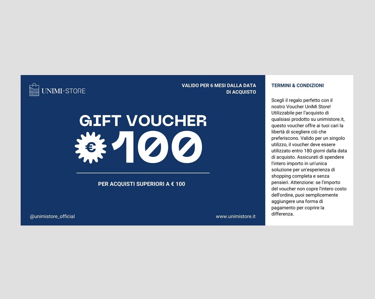 Choose the perfect gift with our UniMi Voucher! Usable for the purchase of any product in our online store at unimistore.it, this voucher gives your loved ones the freedom to choose what they prefer. Valid for a single use, the voucher must be used within 180 days from the date of purchase. Make sure you spend the entire amount in one solution for a complete and worry-free shopping experience. Please note: if the amount of the voucher does not cover the entire cost of the order, you can simply add a form of payment to cover the difference.