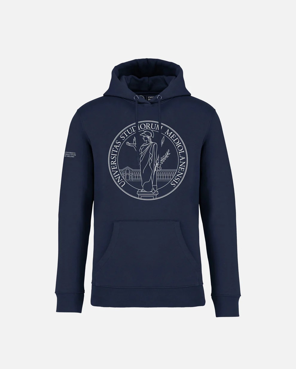 Front print of the Minerva logo and screen print of the Università Studi di Milano + Minerva logo on the sleeve.